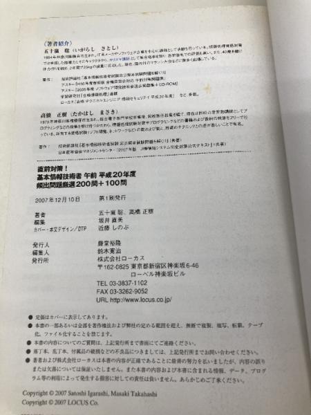直前対策!基本情報技術者午前平成20年度頻出問題厳選200問 ローカス 五十嵐 聡