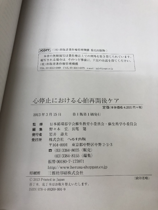 【難あり】心停止における心拍再開後ケア へるす出版 野々木 宏