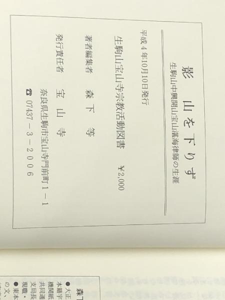影 山を下りず 生駒山中興開山宝山湛海律師の生涯 宝山寺 森下等