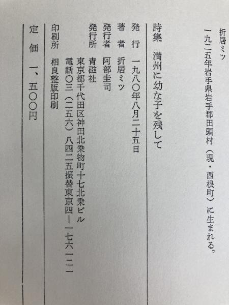 満州に幼な子を残して―折居ミツ詩集 (1980年) 青磁社 折居 ミツ