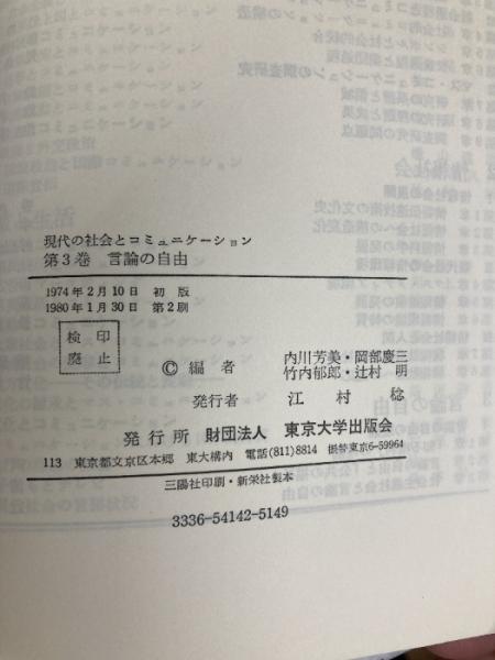 講座現代の社会とコミュニケーション〈3〉言論の自由 (1974年) 東京大学出版会 内川 芳美