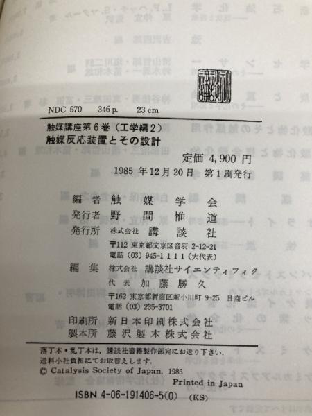 触媒講座 (第6巻) 工学編2 触媒反応装置とその設計 講談社 触媒学会