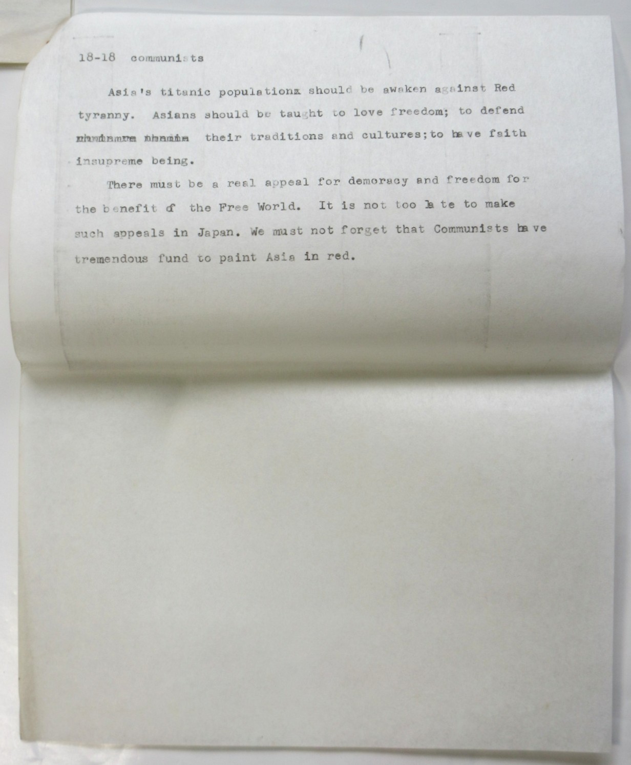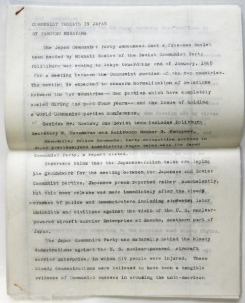 村山有 英文草稿「日本に於ける共産主義者の脅威」