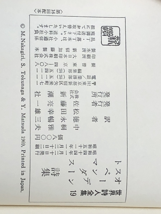 世界詩人全集〈第19〉オーデン・スペンダー・トマス詩集 (1969年)※イタミ有