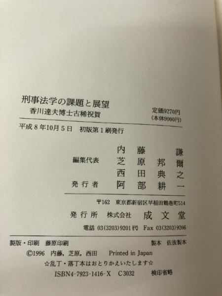 刑事法学の課題と展望 成文堂