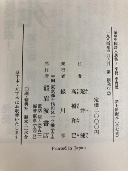 新修中国詩人選集〈5〉李賀・李商隠 (1984年)