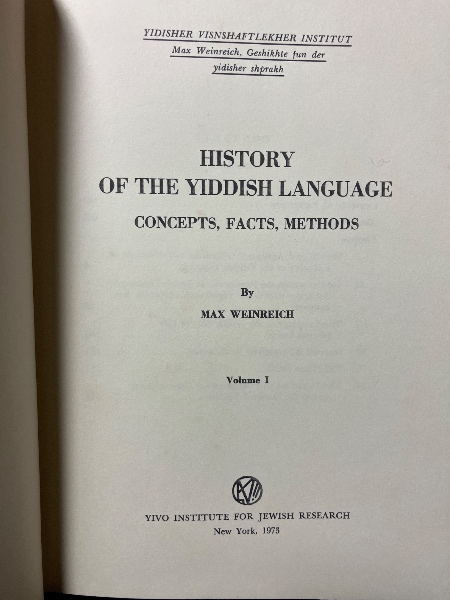 History Yiddish Language. Concepts, Facts, Methods. (イディッシュ語の歴史 ヴァインリッヒ著 NY, YIVOユダヤ学研究所刊行、全4巻)