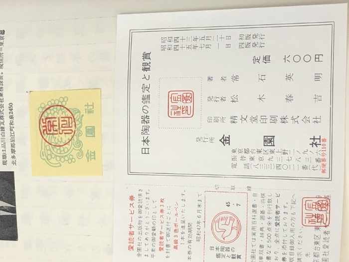 日本陶器の鑑定と観賞 (1968年) (実用百科選書)※イタミ有