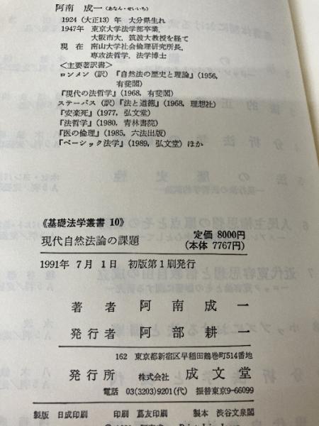 【箱無し・カバー無し】現代自然法論の課題 (基礎法学叢書) 成文堂 阿南 成一