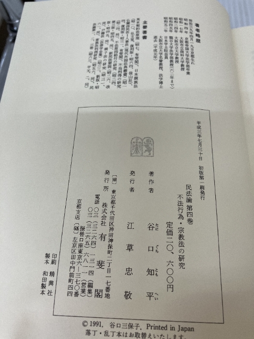 民法論 第4巻 有斐閣 谷口 知平