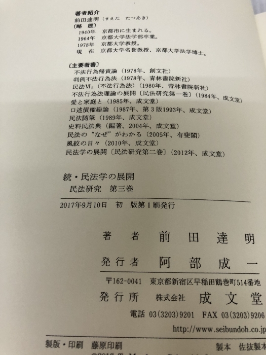 続・民法学の展開 (民法研究 第三巻) 成文堂 前田達明