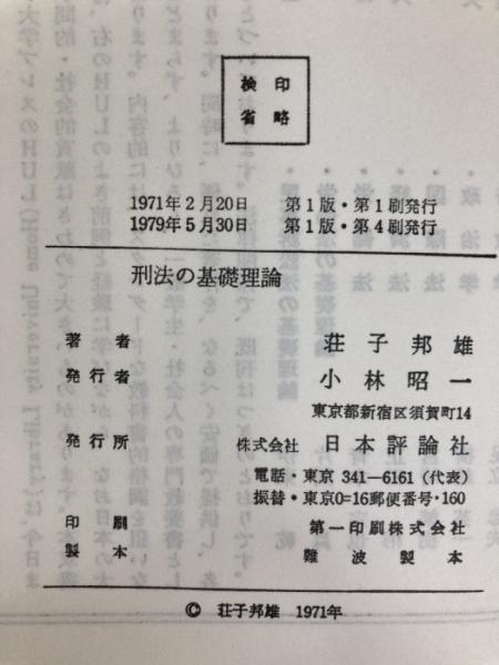 刑法の基礎理論 (1971年) (Basic university library) 日本評論社 荘子 邦雄