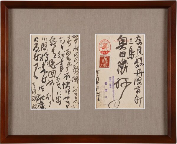 会津八一葉書額