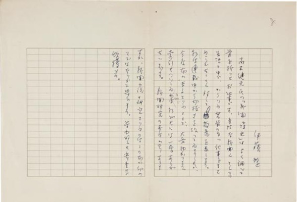 • 解説 『無題』 ペン書 400字詰原稿用紙1枚完 おそらくは「新聞小説史稿一」(高木健夫・三友社・昭39)の推薦文。(種別)推薦文 #八木書店近代自筆物/1.草稿類 #94号近代文学特輯 code05772 ※自筆物につきましては、毎月25日前後に新蒐品を追加しております。PDF形式で御覧になりたい方は https://company.books-yagi.co.jp/archives/news/10928 を参照ください。