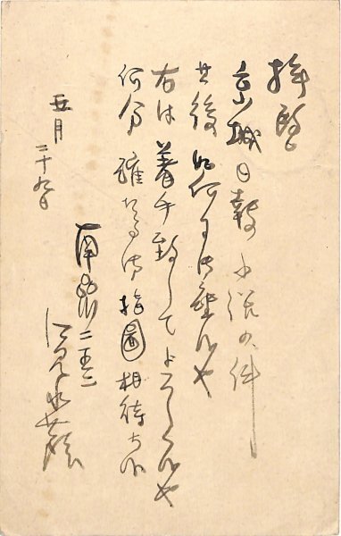 • 解説 島田賢平宛 毛筆 7行 大2・5・29(消印) 小説連載の問い合わせ。「京城日報小説の件其後如何に御座候や 右は着手致してよろしく候や 何分確たる御指圖相待ち候」。(受信地)京橋区日吉町 #八木書店近代自筆物/3.葉書類 #94号近代文学特輯 code08015 ※自筆物につきましては、毎月25日前後に新蒐品を追加しております。PDF形式で御覧になりたい方は https://company.books-yagi.co.jp/archives/news/10928 を参照ください。