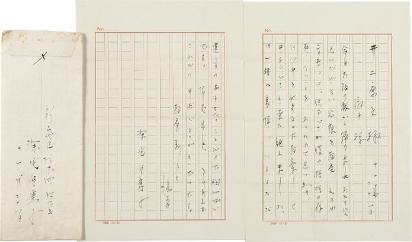• 解説 井上康文宛 ペン書 原稿用紙2枚15行 封筒付 年不明・11・21(本文) 昭和40年か 見舞状。「今日大阪の旅から帰りました。あまりにも思いがけない悲報を拝受、もはやこの世には、信ずべき加護の摂理の存在しないことを、あらためて思い知り、御心中を他事ならず拝察して申しあぐべき言葉も絶えました」。(発信地)新宿区柏木(受信地)杉並区中通町 #八木書店近代自筆物/2.書簡類 #94号近代文学特輯 code07047 ※自筆物につきましては、毎月25日前後に新蒐品を追加しております。PDF形式で御覧になりたい方は https://company.books-yagi.co.jp/archives/news/10928 を参照ください。