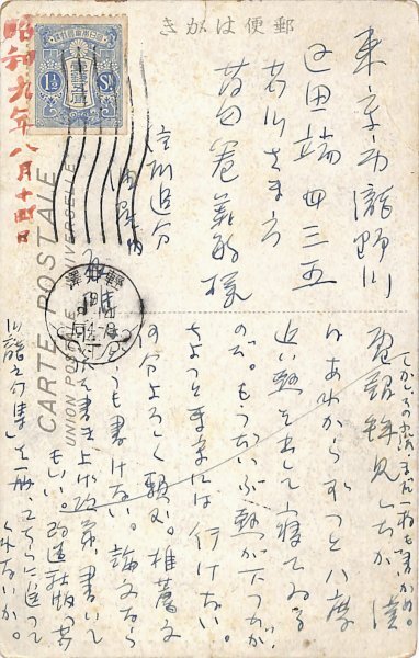 • 解説 葛巻義敏宛 ペン書 11行 昭9・8・14(消印) 「芥川龍之介全集 普及版」の話題か。「原稿拝見したが、僕はあれからずつと八度近い熱を出して寝ているのだ。もうだいぶ熱が下つたが、ちよつと東京には行けない。何分よろしく頼む。推薦文はどうも書けない。論文なら小説を書き上げ次第、書いてもいい。しかし、その小説、まだ一枚も書かぬ。改造社版『芥川龍之介集』を一冊、こちらに送つてくれないか」。(発信地)信州追分油屋(受信地)瀧野川区田端町 #八木書店近代自筆物/3.葉書類 #八木古書2025年12月新蒐 code09969 ※自筆物につきましては、毎月25日前後に新蒐品を追加しております。PDF形式で御覧になりたい方は https://company.books-yagi.co.jp/archives/news/10928 を参照ください。94号目録(R7.1)以後の追加は「#八木古書2025」で検索できます。