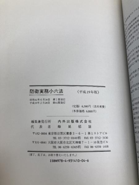 防衛実務小六法 (平成19年版) 内外出版 内外出版株式会社