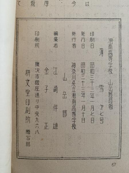 薄雪 第七号 湘南高等学校 山岳部部報