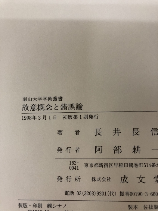 【カバー無し】故意概念と錯誤論 (南山大学学術叢書) 成文堂 長井 長信