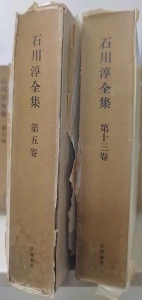 • 解説 函。13に別冊「限定版石川淳全集月報綴(昭和36-37年版)」付。函・本体にグラシン紙カバー。函にヤケ変色・シミ・汚れ・縁角イタミ。函背に水シミ様汚れ。1:函縁下部イタミ。3:背小虫損。4:天極少茶シミ。5・13:函背コワレ。本体見返しにシミ。その他経年並。通読に問題ございません。ゆうパック100サイズ。