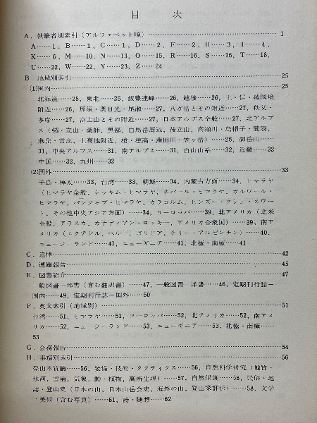 「山岳」総索引 第26年第1号(1931) 第60年(1965)