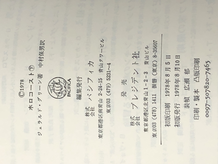 ホロコースト―戦争と家族 上・下 (1978年) ジェラルド・グリーン※イタミ有