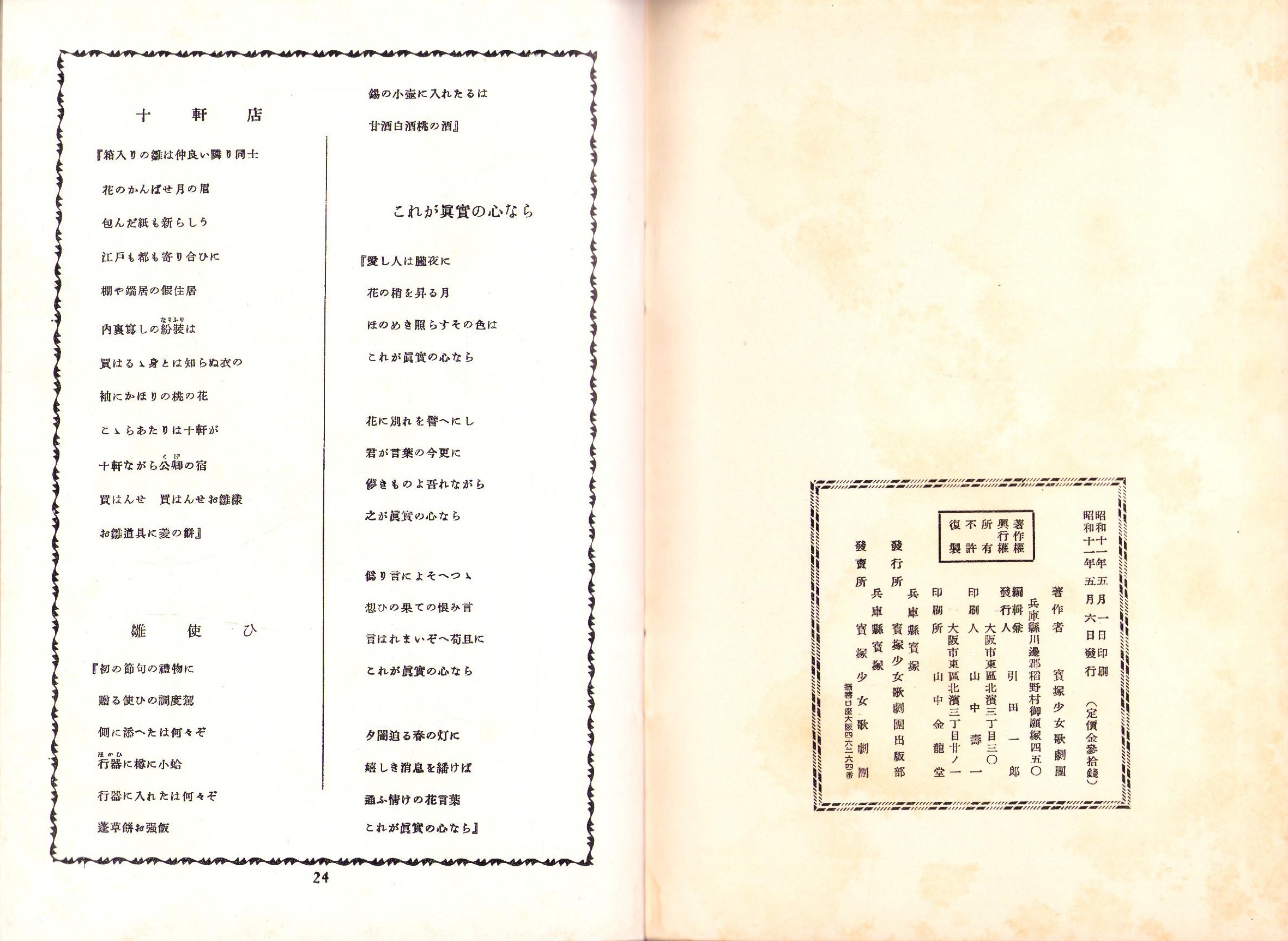 • 出版社 発行所・宝塚少女歌劇団出版部、発売所・宝塚少女歌劇団(兵庫県)