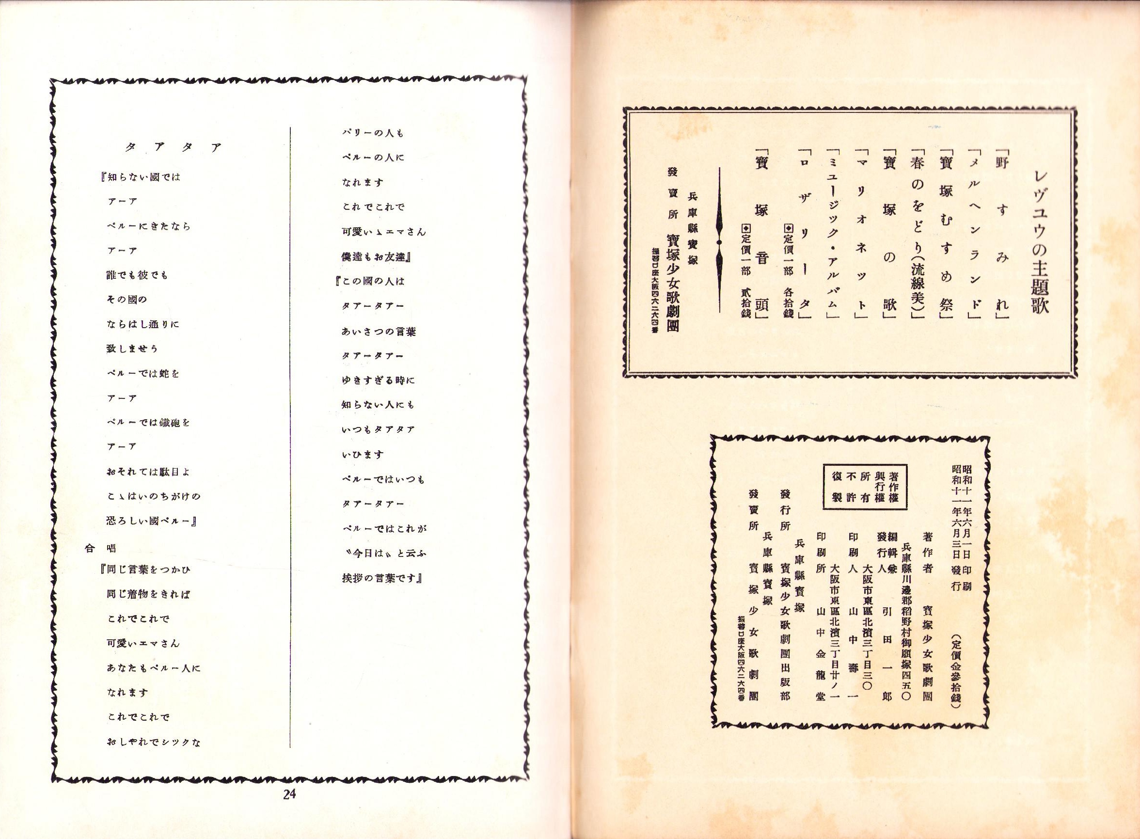 • 出版社 発行所・宝塚少女歌劇団出版部、発売所・宝塚少女歌劇団(兵庫県)