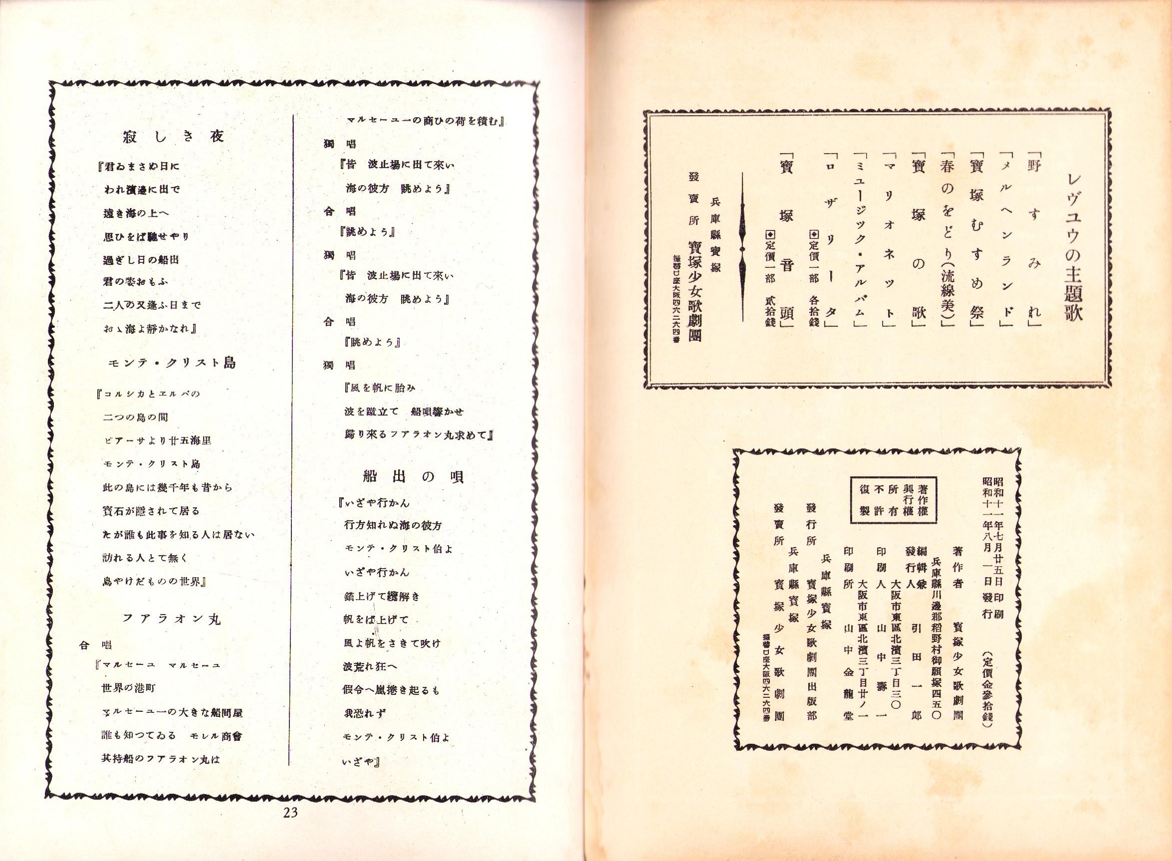 • 出版社 発行所・宝塚少女歌劇団出版部、発売所・宝塚少女歌劇団(兵庫県)