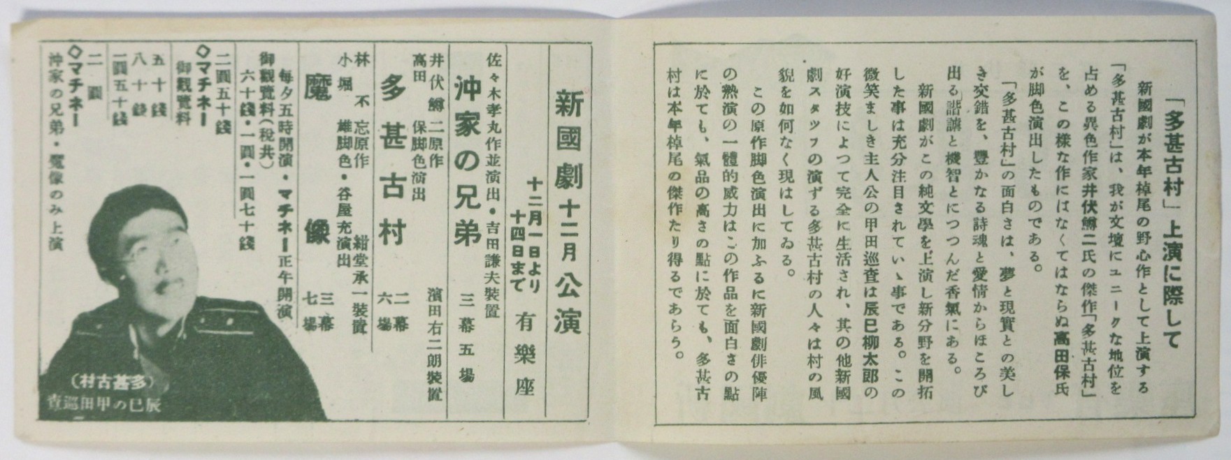 新國劇十二月公演「多甚古村」チラシ
