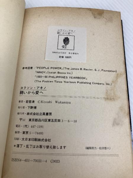 【※イタミ有】コラソン・アキノ―闘いから愛へ 立風書房 若宮 清