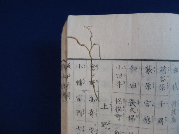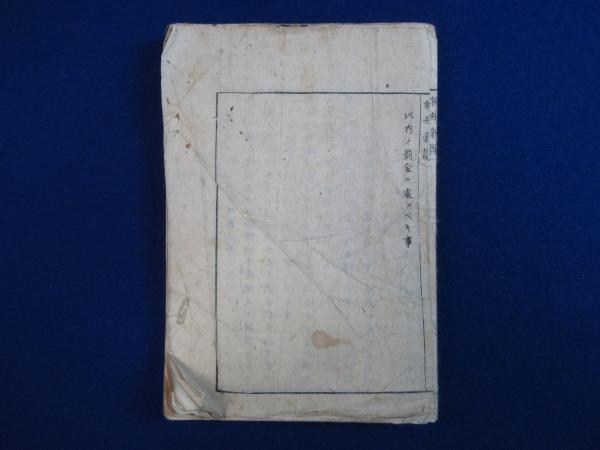 • 解説 和装(天側綴紐欠)、表紙に検印、経年ヤケシミ・折れ端ヨレ虫損多数・濡れシミ墨よごれ多少・最終ページいたみ大、書込なし
