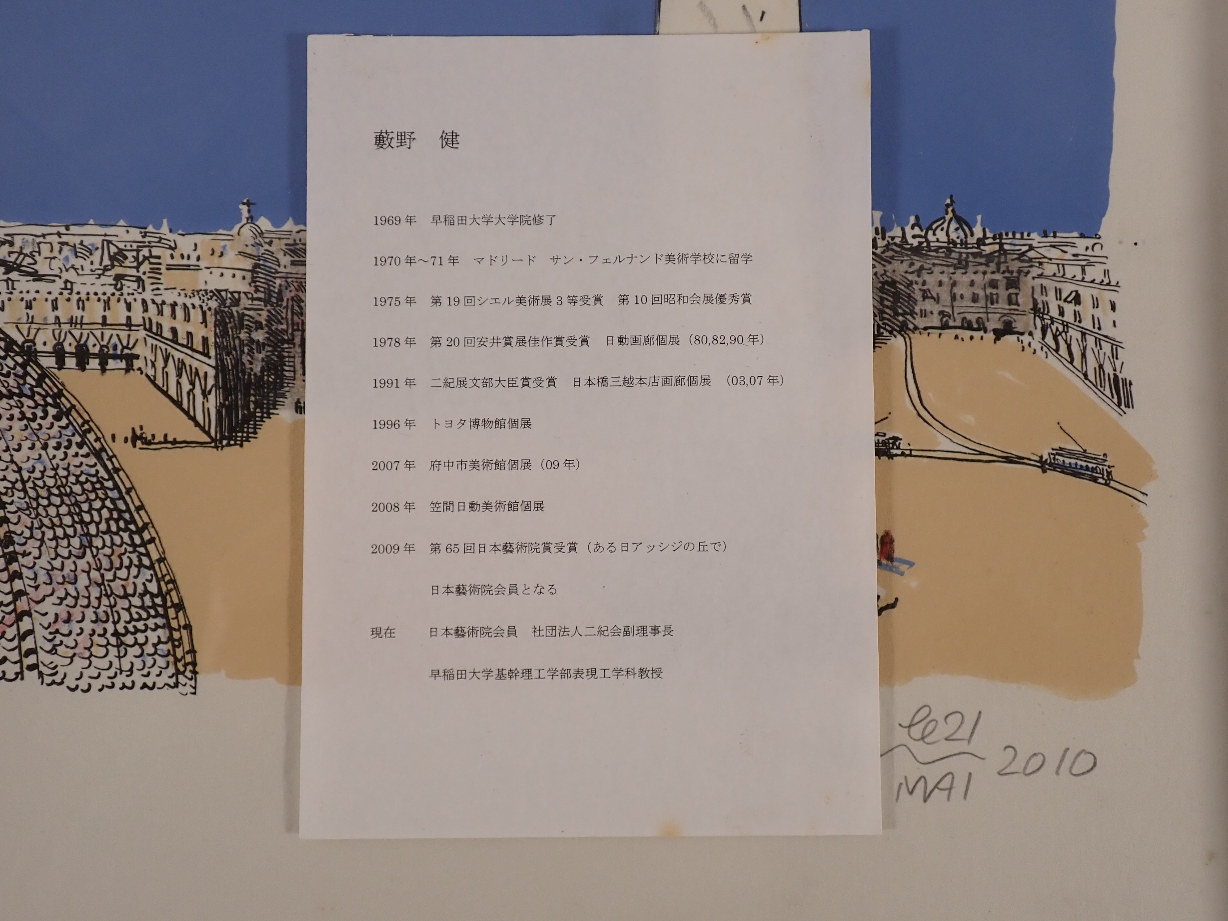 【真作】藪野健「遠い日の町で」手彩色リトグラフ 限定65部 2010年 日本芸術院会員就任記念 ローマ・ポポロ広場 額装品 65