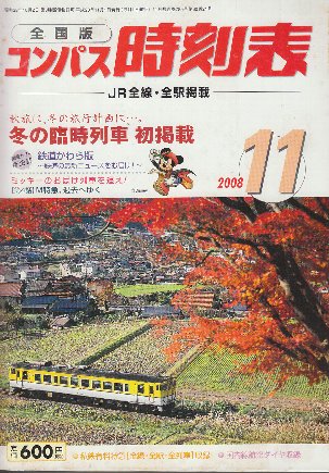 全国版のコンパス時刻表 2008年11月 冬の臨時列車初掲載/鉄道かわら版