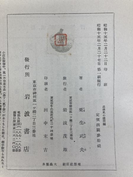 法律史の諸問題 (1940年) 岩波書店 栗生 武夫
