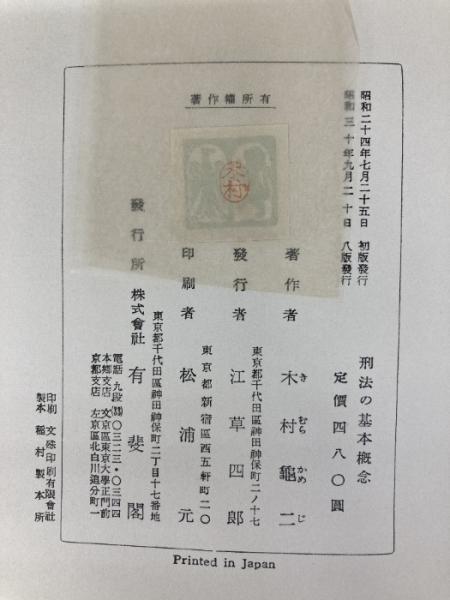 刑法の基本概念 (1948年) 有斐閣 木村 亀二