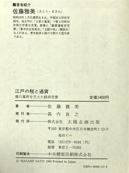 江戸の税と通貨: 徳川幕府を支えた経済官僚 太陽企画出版 佐藤 雅美