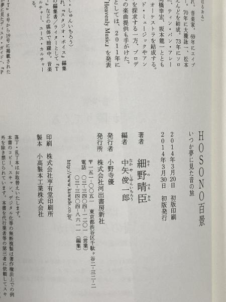 HOSONO百景 河出書房新社 細野 晴臣