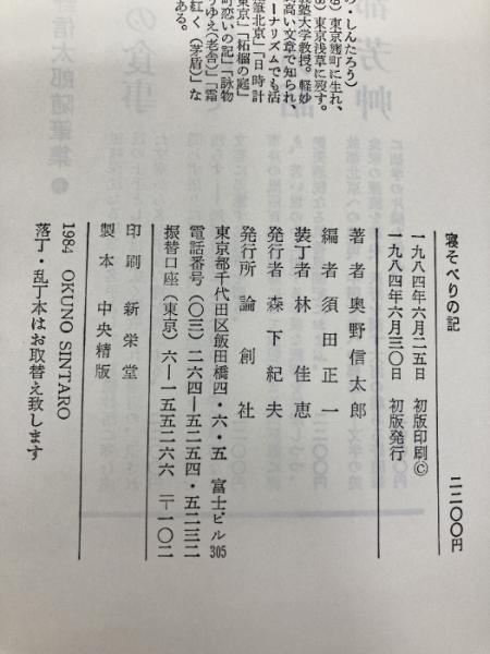 寝そべりの記 (1984年) 論創社 奥野 信太郎