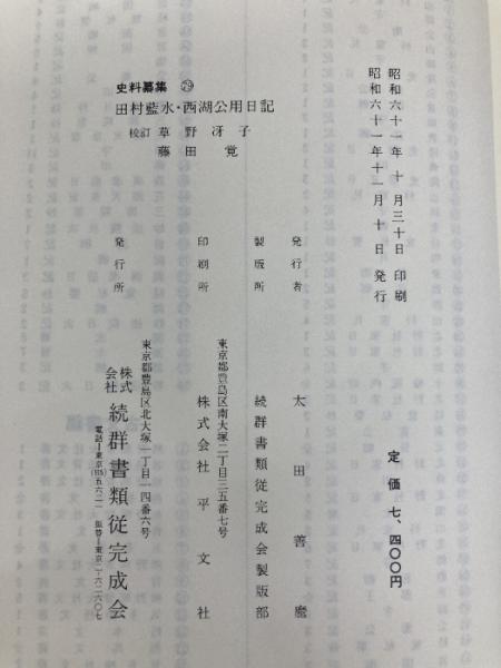 田村藍水・西湖公用日記 (史料纂集古記録編) 続群書類従完成会