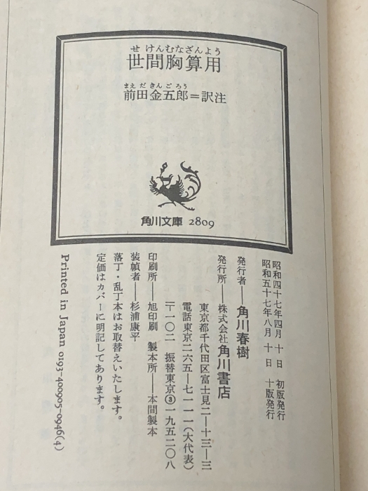 世間胸算用: 付・現代語訳 (角川文庫) KADOKAWA 井原 西鶴※イタミ有