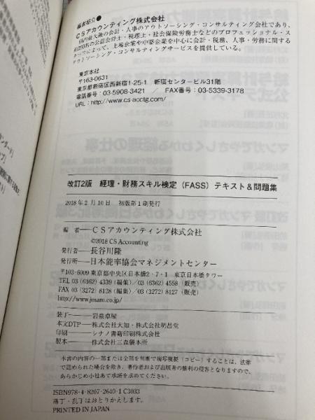 【※カバー無し】改訂2版 経理・財務スキル検定(FASS)テキスト&問題集 日本能率協会マネジメントセンター CSアカウンティング