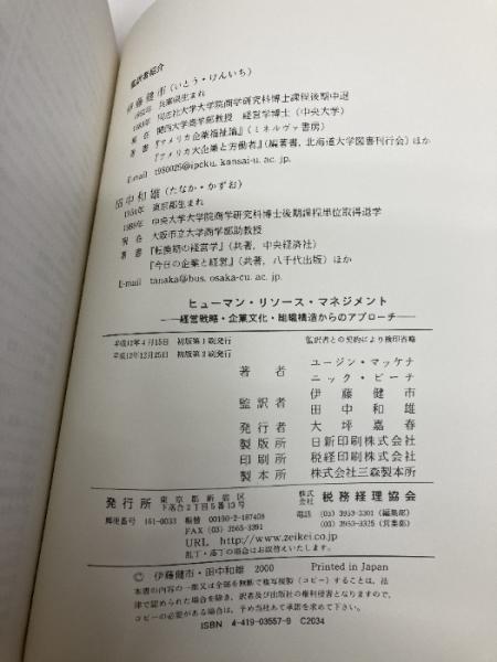 【※カバー無し】ヒューマン・リソース・マネジメント: 経営戦略・企業文化・組織構造からのアプローチ 税務経理協会 ユージン マッケナ
