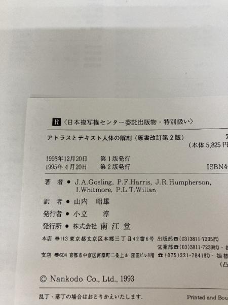【イタミ有り】アトラスとテキスト人体の解剖 南江堂 J.A.Gosling