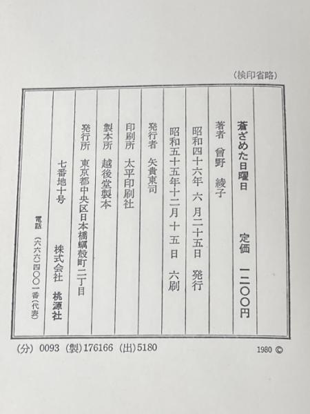 蒼ざめた日曜日―曽野綾子恐怖小説集 (1971年) 桃源社 曽野 綾子