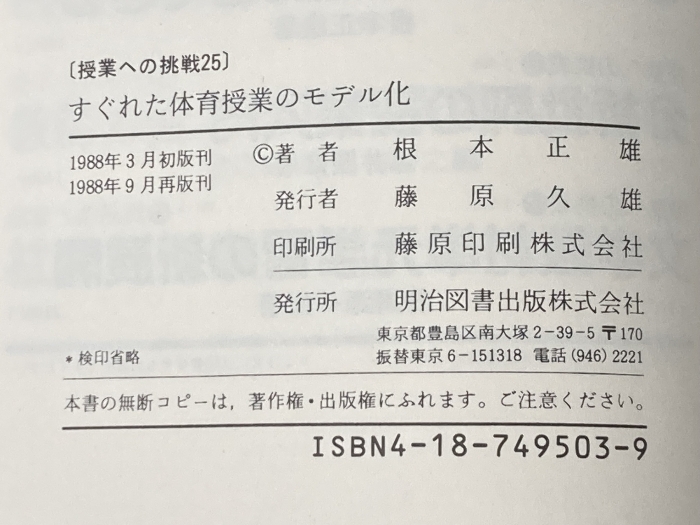 すぐれた体育授業のモデル化 (授業への挑戦) 明治図書出版 根本正雄※イタミ有