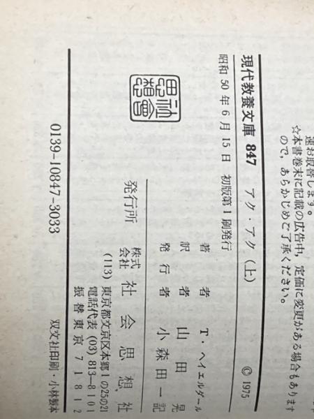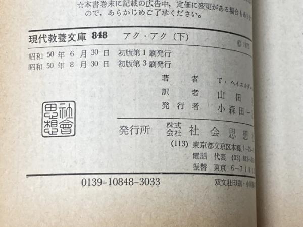 アク・アク―孤島イースター島の秘密上 (教養文庫) 社会思想社 トール・ヘイエルダール※イタミ有