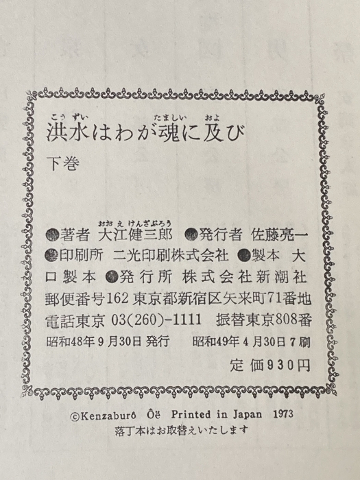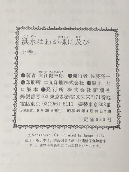 大江健三郎 上下2冊セット 洪水はわが魂に及び 純文学書下ろし作品 新潮社※イタミ有