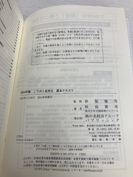 【※多数の書き込み有】ごうかく社労士基本テキスト〈2024年版〉 中央経済グループパブリッシング 秋保 雅男